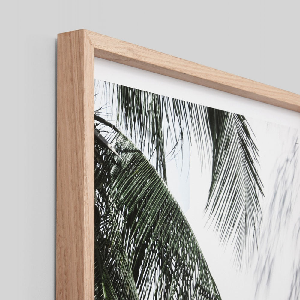 Material: Oak timber frame behind glass, with engineered wood backing. Our framed prints are strung with cord and ready to hang.